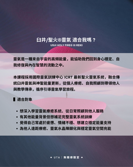 ✦ 一年內同階免費複訓一次 📍 臼井/聖火® III 報名與諮詢: